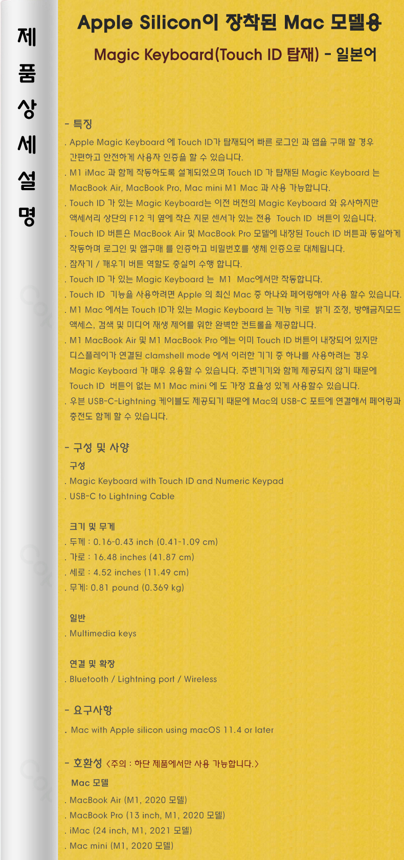 Touch ID ¹× ¼ýÀÚ Å°ÆÐµå žÀç µÈ Apple Magic Keyboard (ÀϺ»¾î) - MK2C3CJ/A