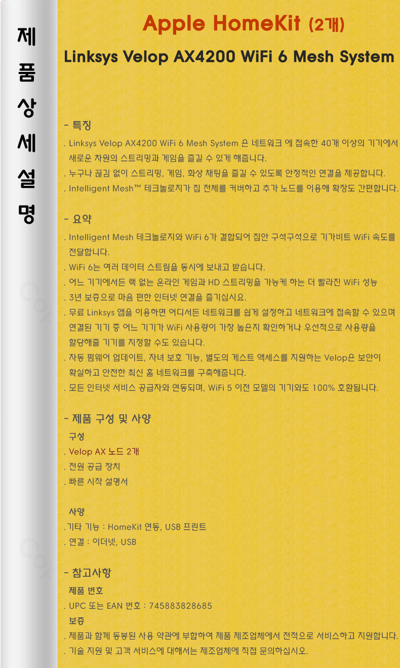Apple HomeKit Linksys Velop AX4200 WiFi 6 Mesh System(2°³)