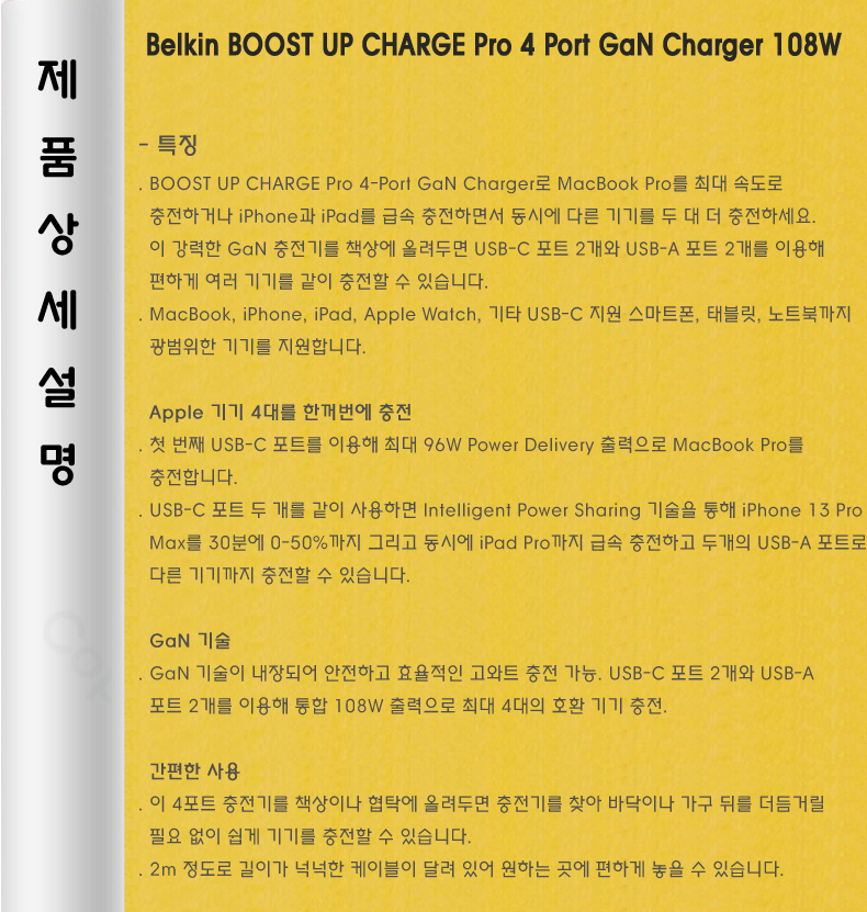 º§Å² ºÎ½ºÆ®¾÷ CHARGE ÇÁ·Î 4Æ÷Æ® GaN 108W ÃæÀü±â