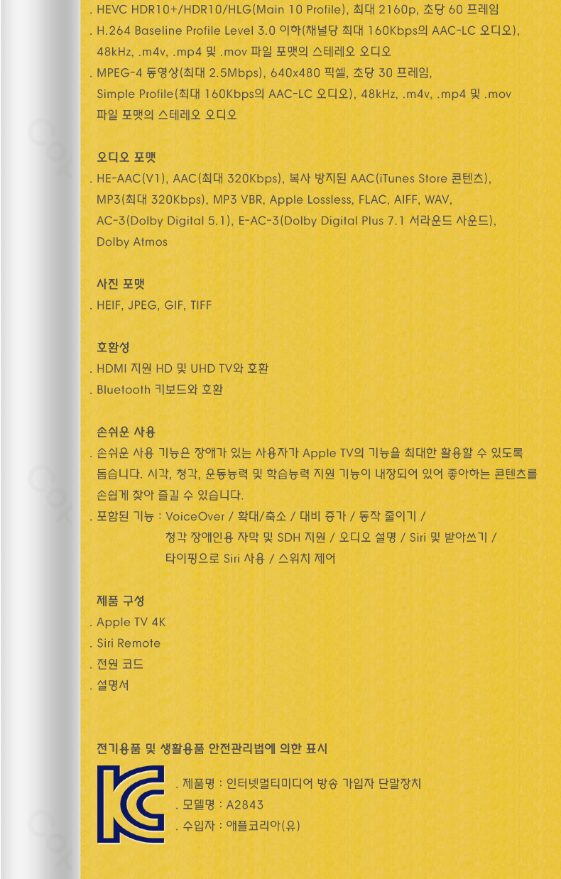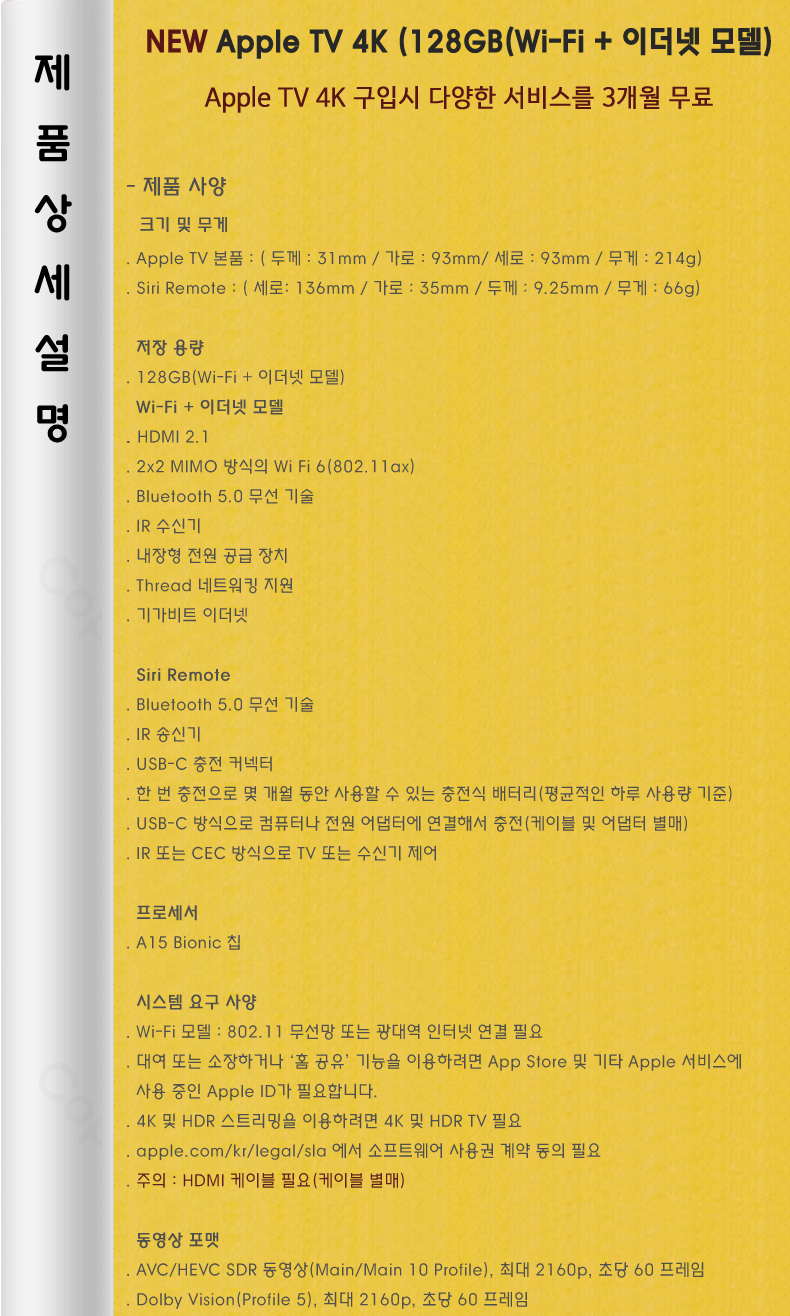 Apple TV 4K Wi‑Fi + ÀÌ´õ³Ý ¸ðµ¨(128GB)