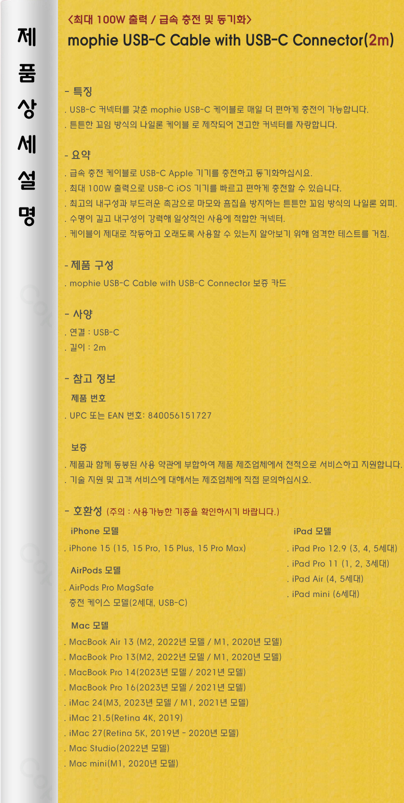 mophie USB-C Cable with USB-C Connector (2m)
