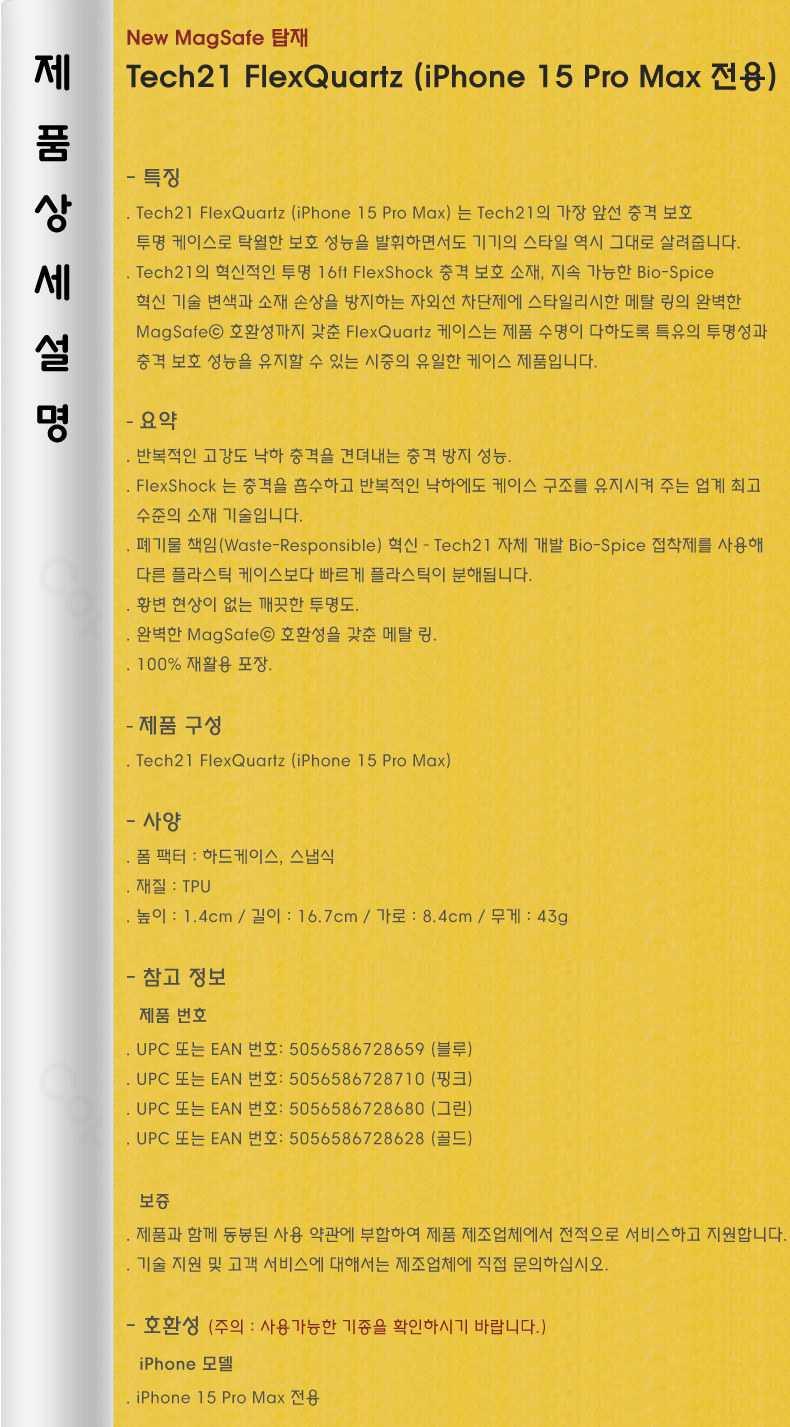 Tech21 FlexQuartz ¸Æ¼¼ÀÌÇÁ žÀç iPhone 15 Pro Max Àü¿ë (ºí·ç/ÇÎÅ©/±×¸°/°ñµå)