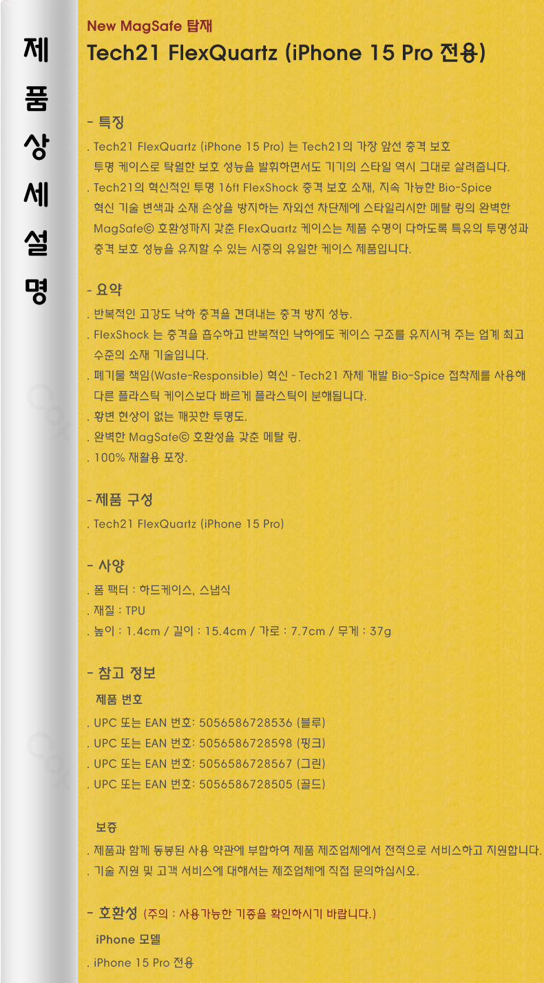 Tech21 FlexQuartz ¸Æ¼¼ÀÌÇÁ žÀç iPhone 15 Pro Àü¿ë (ºí·ç/ÇÎÅ©/±×¸°/°ñµå)