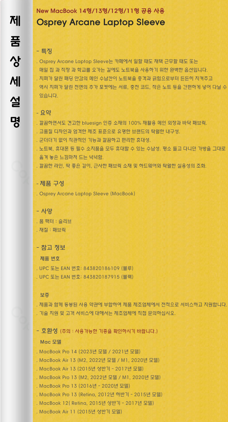 Osprey Arcane Laptop Sleeve Case(¸ÆºÏ 14/13/12/11Çü) °ø¿ë - ºí·ç