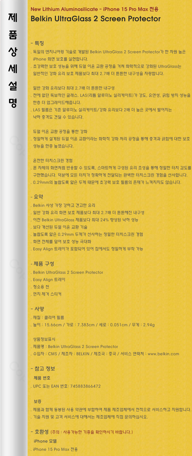 Belkin UltraGlass 2 Screen Protector (iPhone 15 Pro Max)