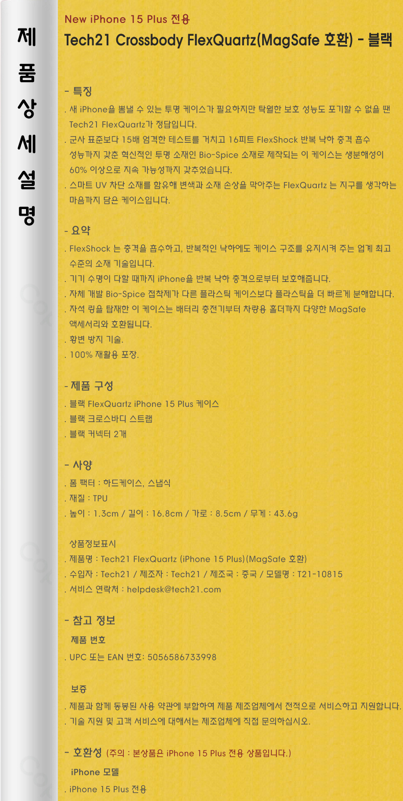Tech21 Crossbody FlexQuartz for iPhone 15 Plus Black Case (MagSafe compatible)