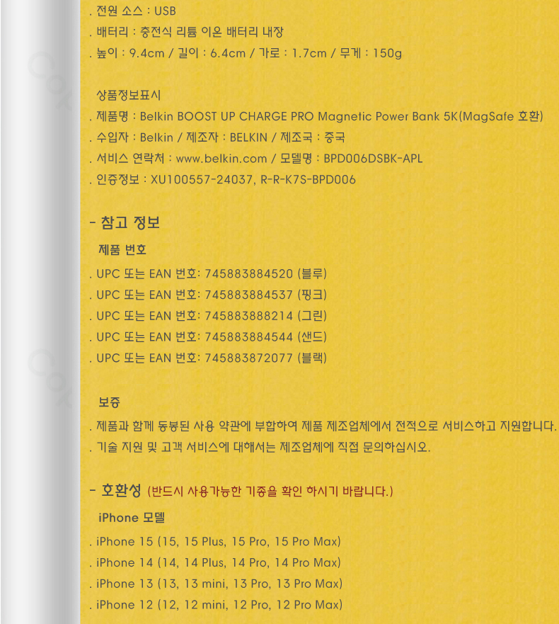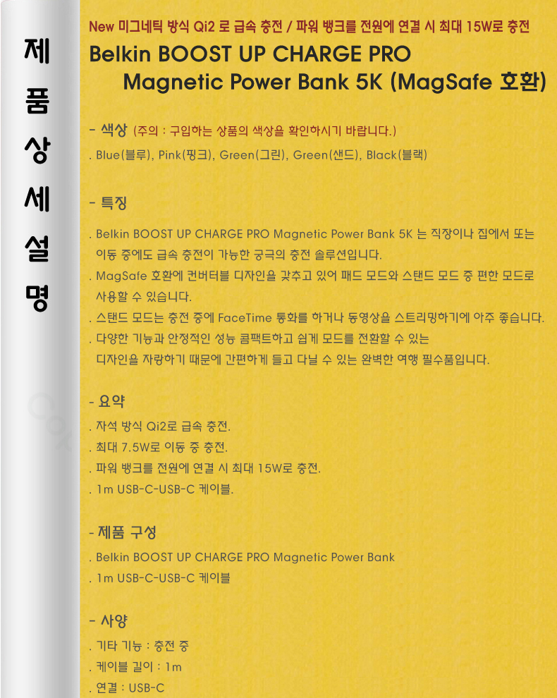 Belkin BOOST UP CHARGE PRO Magnetic Power Bank 5K(MagSafe ȣȯ)