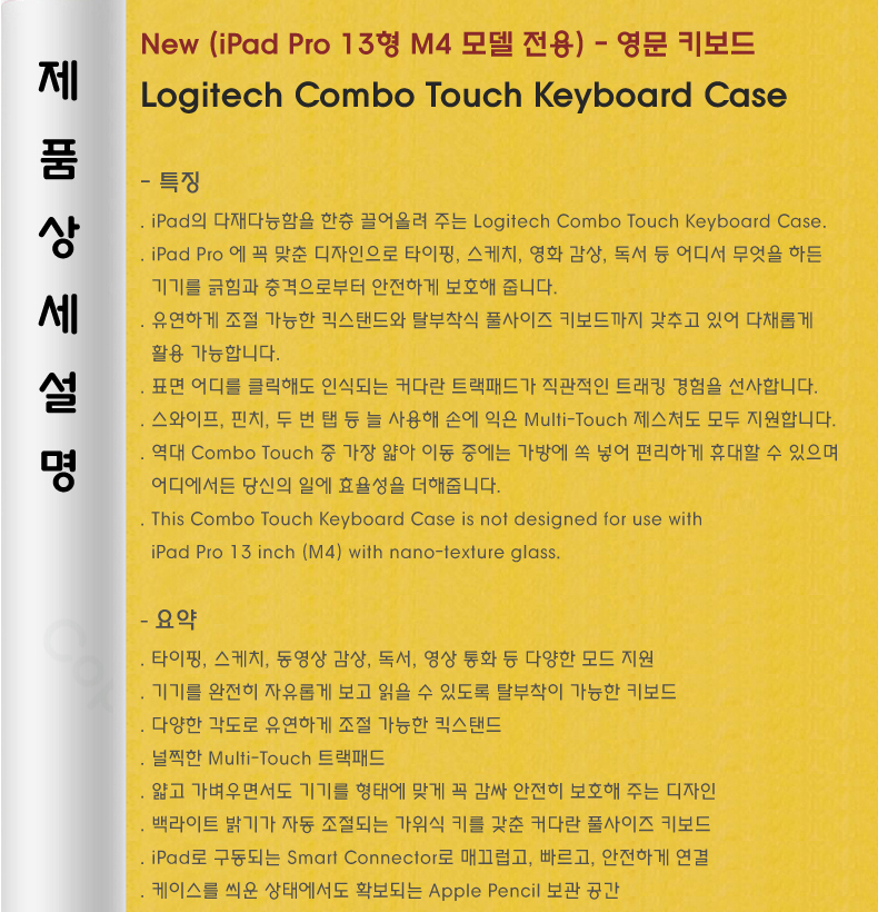 Logitech Combo Touch Keyboard Case (iPad Pro 13 M4 ¸ðµ¨)