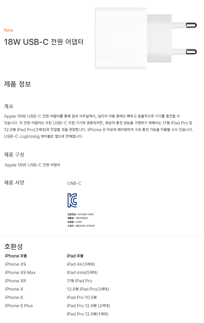 MU822KH/A 18W USB-C Àü¿ø ¾î´ðÅÍ
