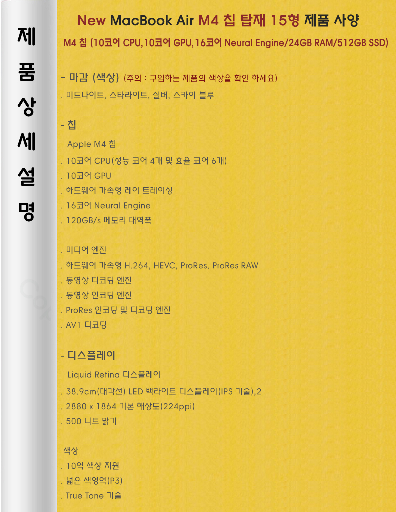 MC7D4KH/A 15Çü MacBookAir (M4 Ĩ) ½ºÄ«ÀÌ ºí·ç