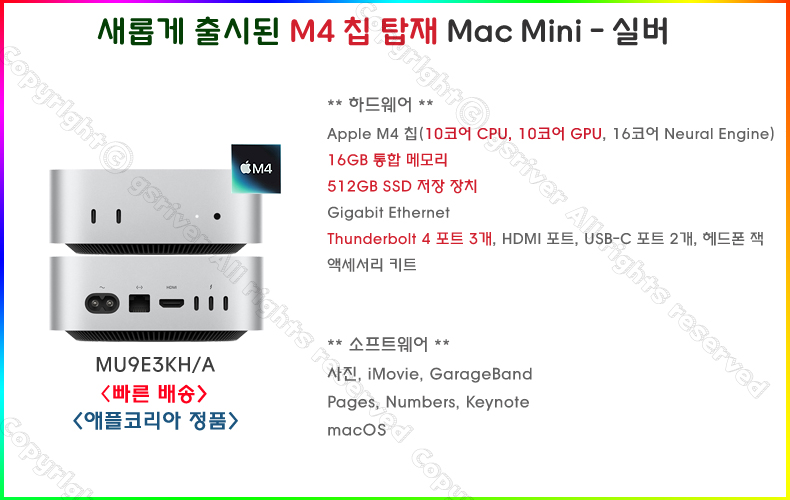 MU9E3KH/A M4 Ĩ žÀç MacMini (10 CPU/10 GPU/16G RAM/512GB SSD)