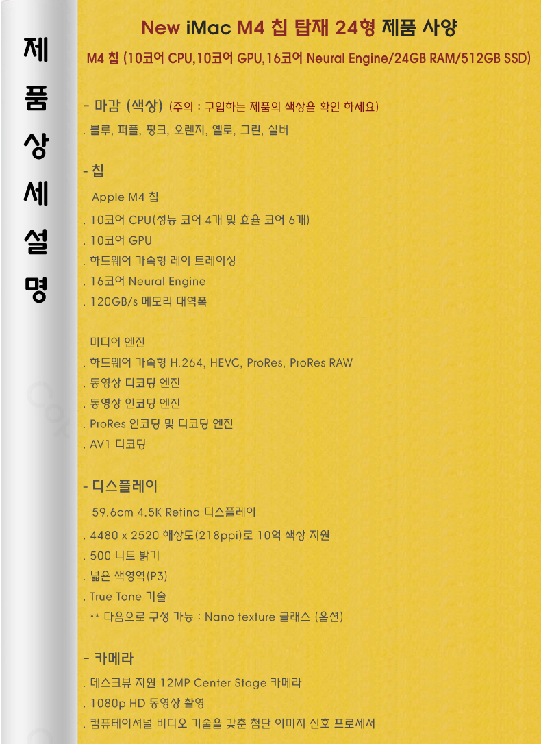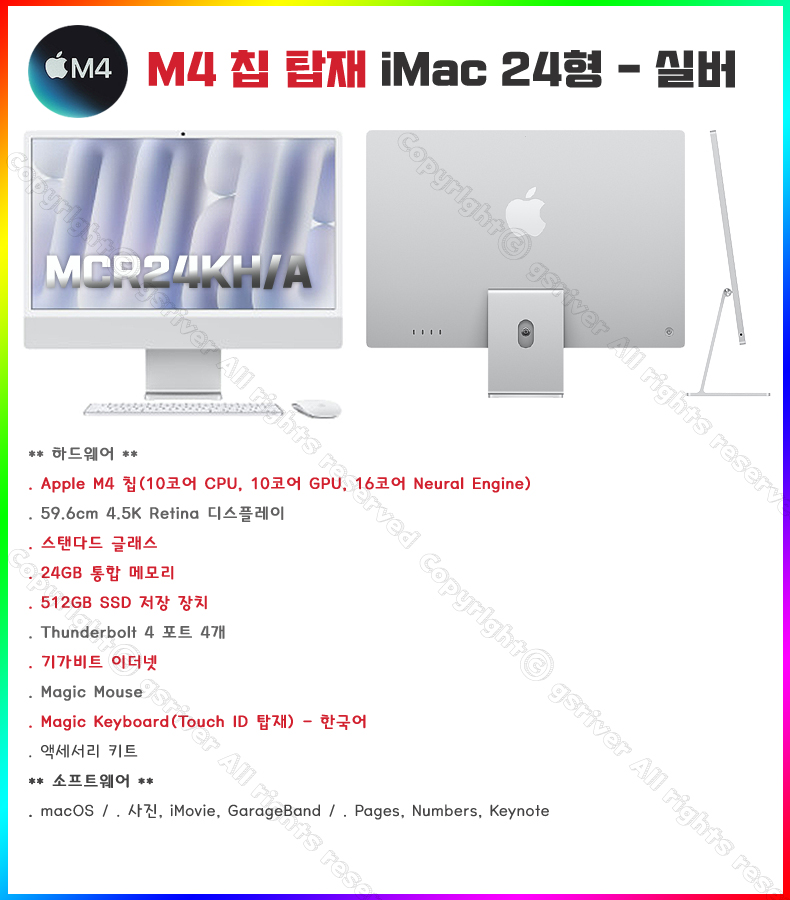 M4 24ÀÎÄ¡ iMac MCR24KH/A (10 CPU/10 GPU/24G RAM/512GB SSD/±â°¡ÀÌ´õ³Ý) - ½Ç¹ö