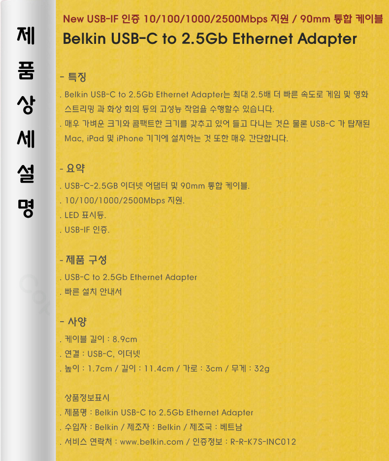 Belkin USB-C to 2.5Gb Ethernet Adapter