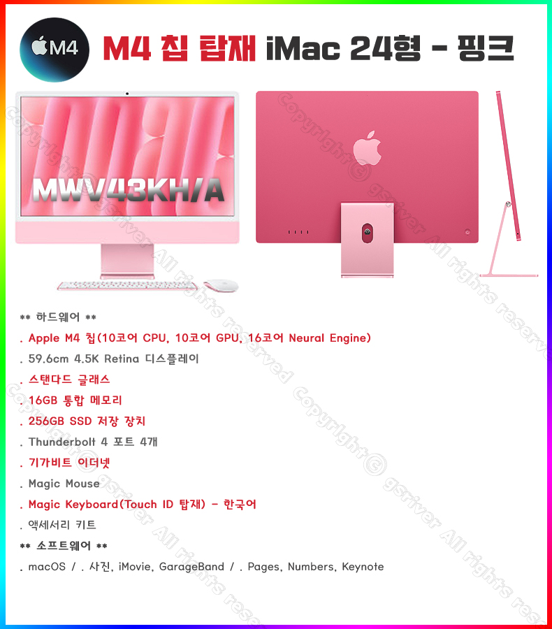 M4 24ÀÎÄ¡ iMac MWV43KH/A (10 CPU/10 GPU/16G RAM/256GB SSD/±â°¡ÀÌ´õ³Ý) - ÇÎÅ©