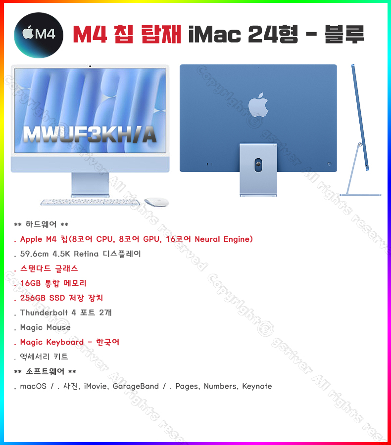 M4 24ÀÎÄ¡ iMac MWUF3KH/A (8 CPU/8 GPU/16G RAM/256GB SSD) - ºí·ç