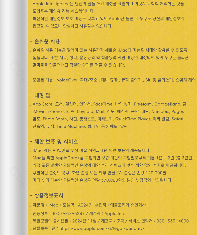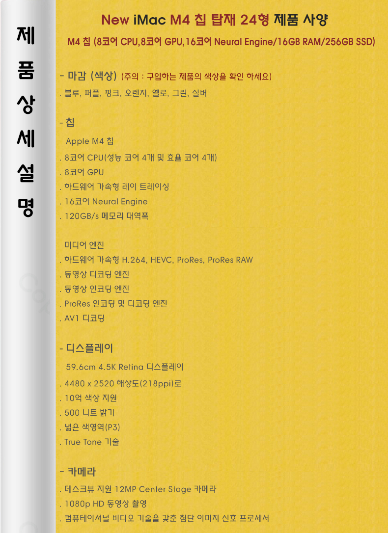 M4 24ÀÎÄ¡ iMac MWUG3KH/A (8 CPU/8 GPU/16G RAM/256GB SSD) - ÇÎÅ©