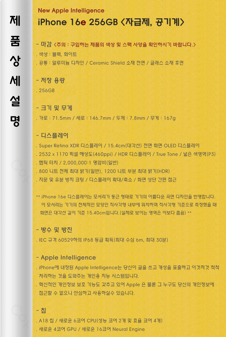 iPhone 16e 256GB ÀÚ±ÞÁ¦ ¾ð¶ôÆù(»ö»ó ¼±ÅÃ)