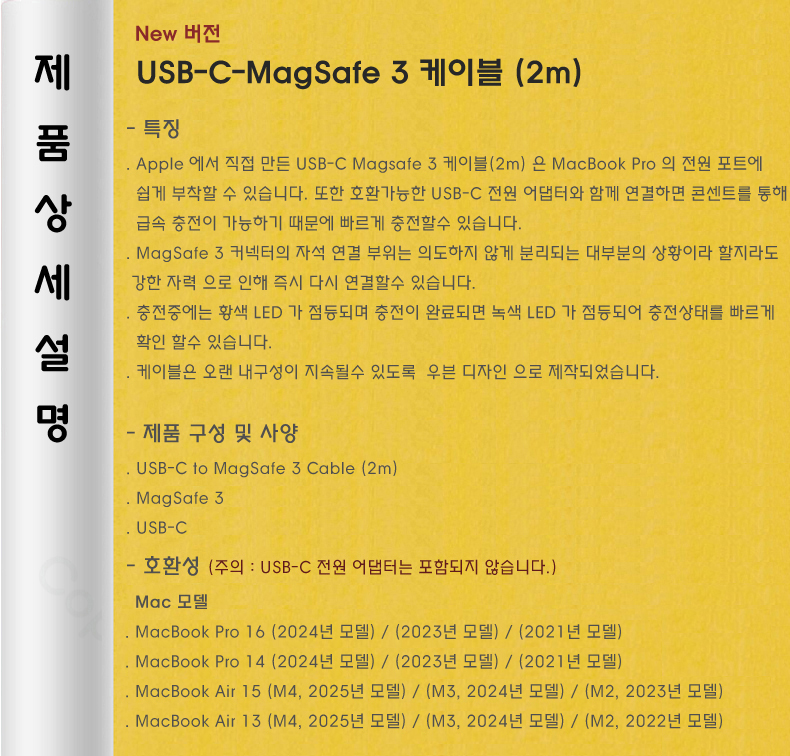 Apple USB-C MagSafe 3 ÄÉÀ̺í(2m) 6°¡Áö »ö»ó ¼±Åð¡´É