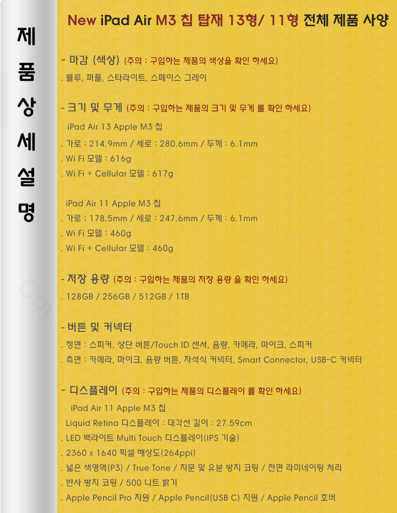 (M3 Ĩ) iPad Air 11Çü Wi-Fi (»ö»ó¹× ¿ë·® ¼±ÅÃ)