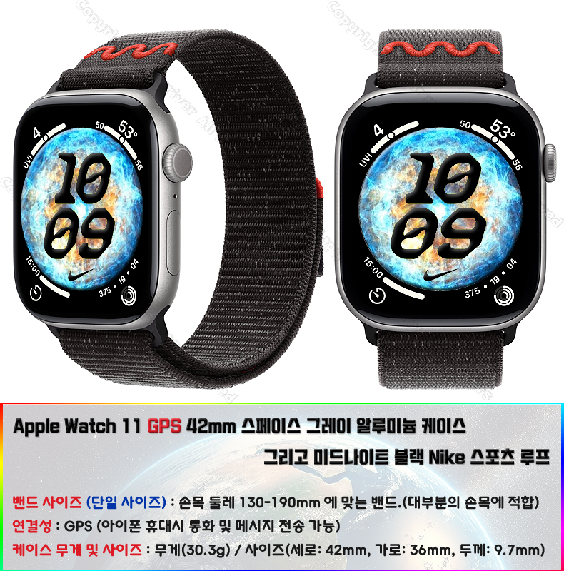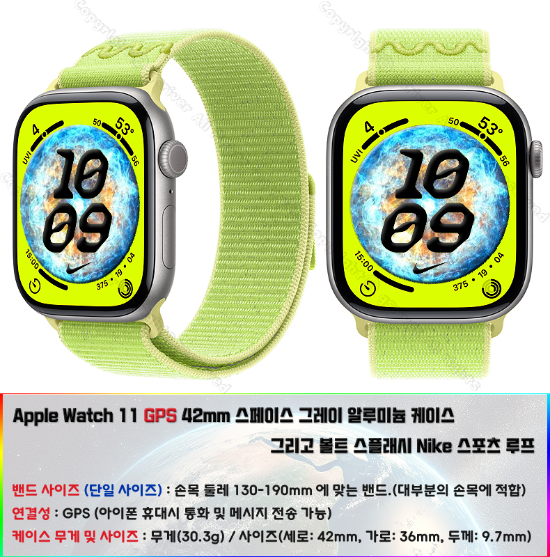 Apple Watch 11 GPS 42mm ½ºÆäÀ̽º ±×·¹ÀÌ/(Nike ½ºÆ÷Ã÷ ·çÇÁ Edition ¼±Åà °¡´É)