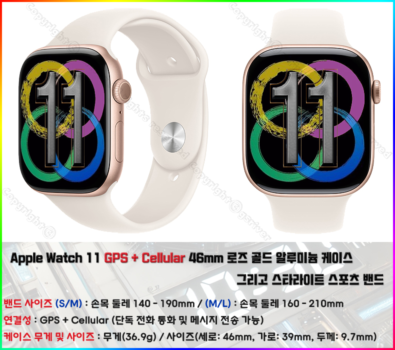Apple Watch 11 GPS + Cellular 46mm ·ÎÁî °ñµå ¾Ë·ç¹Ì´½/½ºÆ÷Ã÷ ¹êµå (»ö»ó ¹× »çÀÌÁî ¼±ÅÃ)