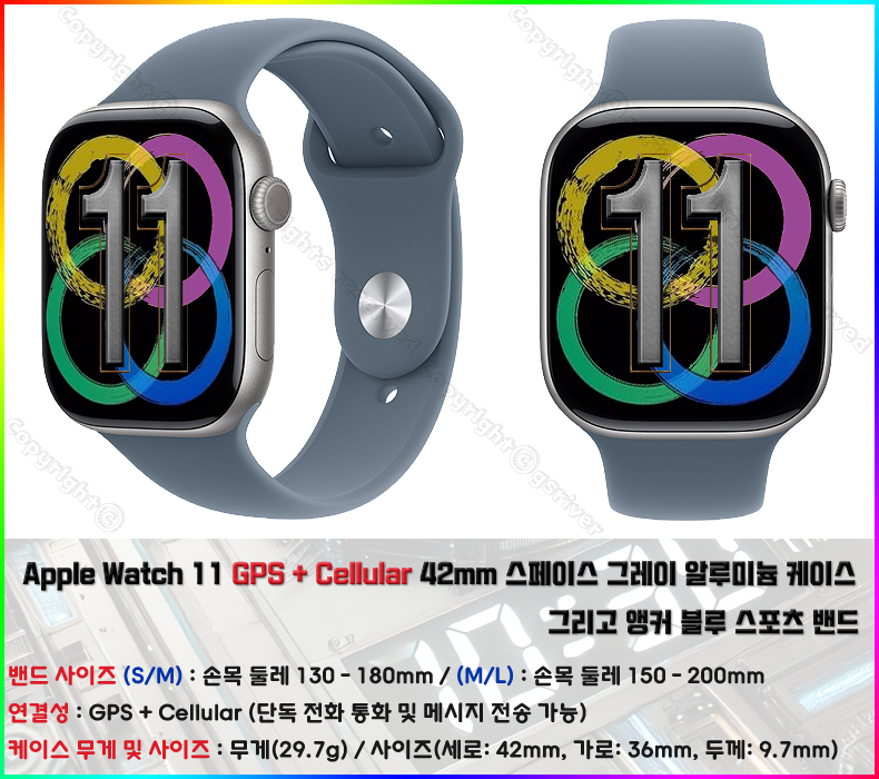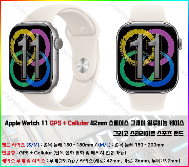 Apple Watch 11 GPS + Cellular 42mm ½ºÆäÀ̽º ±×·¹ÀÌ ¾Ë·ç¹Ì´½/½ºÆ÷Ã÷ ¹êµå (»ö»ó ¹× »çÀÌÁî ¼±ÅÃ)