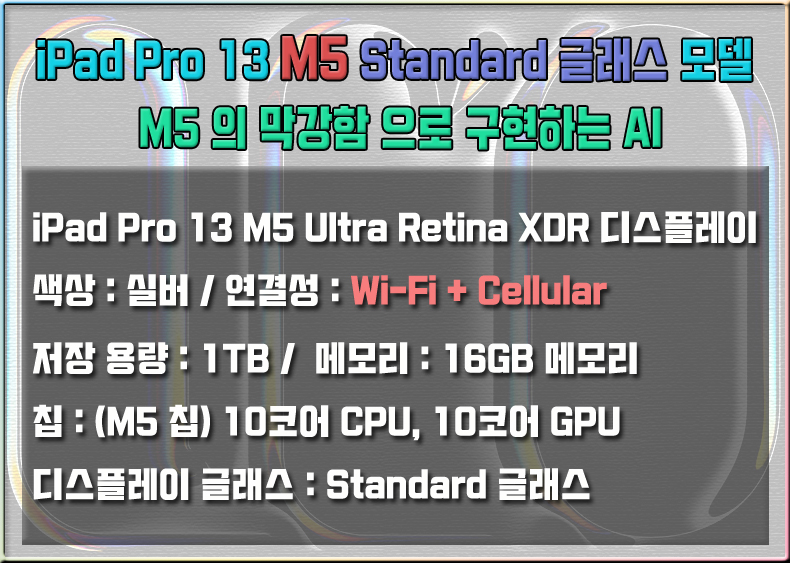 iPad Pro 13Çü(M5) Wi-Fi + Cellular 1TB Standard ±Û·¡½º ¸ðµ¨ - ½Ç¹ö