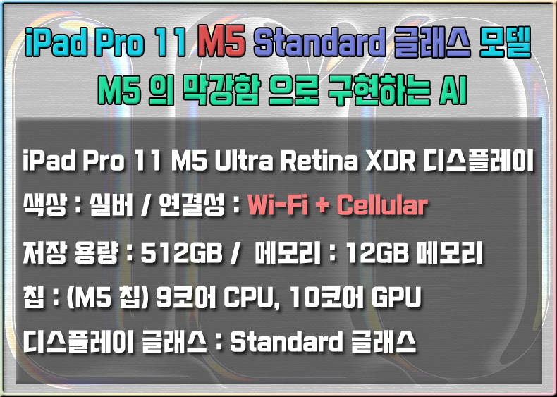 iPad Pro 11Çü(M5) Wi-Fi + Cellular 512GB Standard ±Û·¡½º ¸ðµ¨ - ½Ç¹ö