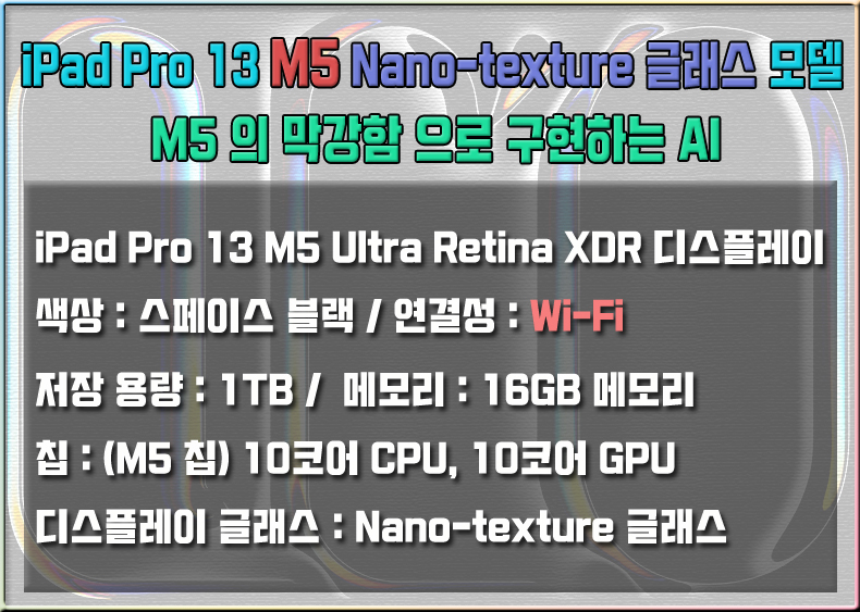 iPad Pro 13Çü(M5) Wi-Fi 1TB Nano-texture ±Û·¡½º ¸ðµ¨ - ½ºÆäÀ̽º ºí·¢