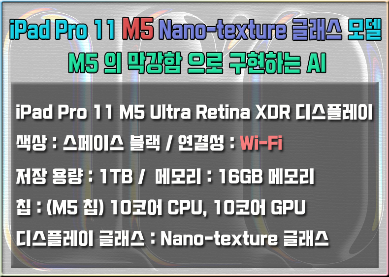 iPad Pro 11Çü(M5) Wi-Fi 1TB Nano-texture ±Û·¡½º ¸ðµ¨ - ½ºÆäÀ̽º ºí·¢