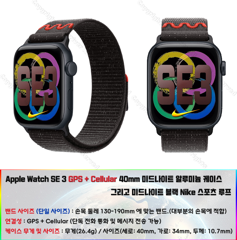 Apple Watch SE 3¼¼´ë GPS + Cellular 40mm ¹Ìµå³ªÀÌÆ®/(Nike ½ºÆ÷Ã÷ ·çÇÁ ¹êµå Edition ¼±Åà °¡´É)