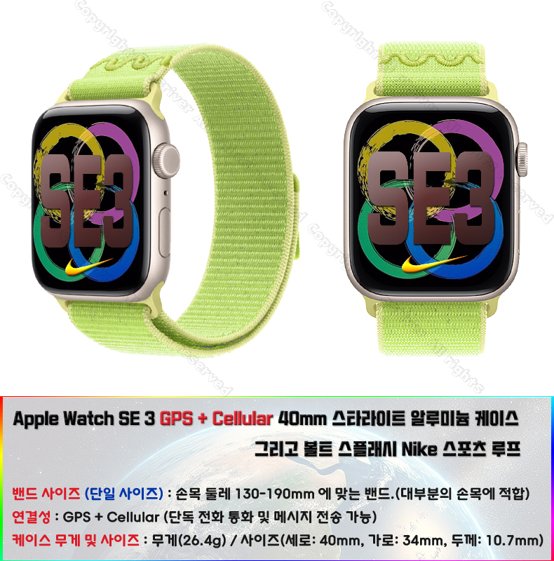 Apple Watch SE 3¼¼´ë GPS + Cellular 40mm ½ºÅ¸¶óÀÌÆ®/(Nike ½ºÆ÷Ã÷ ·çÇÁ ¹êµå Edition ¼±Åà °¡´É)