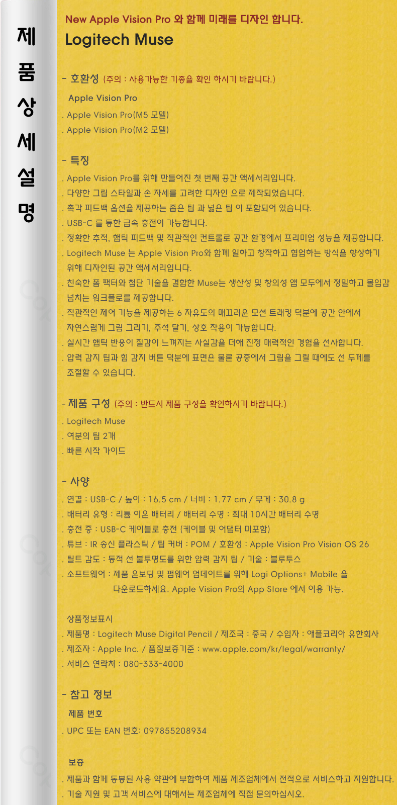Logitech Muse (Apple Vision Pro M5 M2 ¸ðµ¨ °ø¿ë)