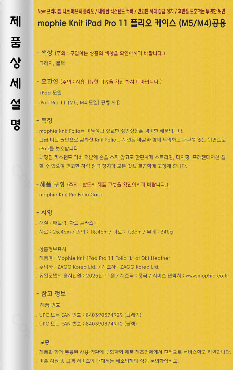 mophie Knit ¾ÆÀÌÆÐµå ÇÁ·Î 11 (M5 M4) Æú¸®¿À ºí·¢ ÄÉÀ̽º - HSAW2