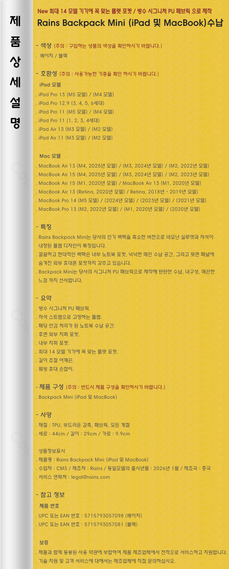»õ·Ó°Ô Ãâ½ÃÇÑ Rains ¹éÆÑ ¹Ì´Ï (¾ÆÀÌÆÐµå ¹× ÃÖ´ë 14 ¸ÆºÏ ¼ö³³°¡´É) º£ÀÌÁö/ºí·¢