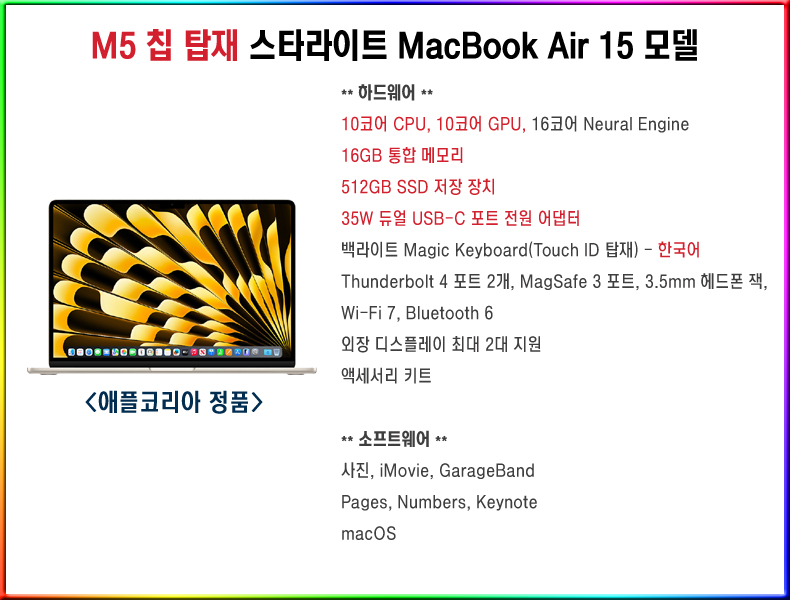 MDVD4KH/A 15Çü MacBookAir (M5) - ½ºÅ¸¶óÀÌÆ®