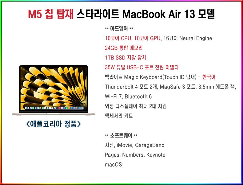 MDHD4KH/A 13Çü MacBookAir (M5) - ½ºÅ¸¶óÀÌÆ®