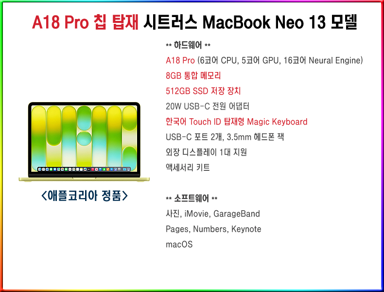 MHFE4KH/A 13Çü MacBook Neo (A18 Pro) - ½ÃÆ®·¯½º