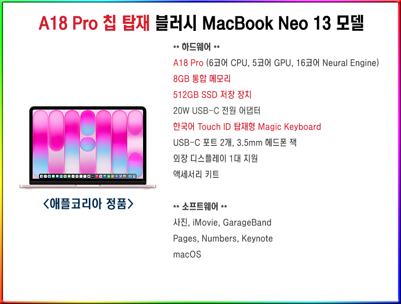 MHFJ4KH/A 13Çü MacBook Neo (A18 Pro) - ºí·¯½Ã