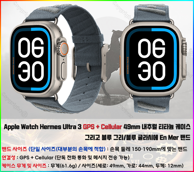 Apple Watch Hermes Ultra 3 49mm ³»Ãß·² ƼŸ´½ ÄÉÀ̽º ±×¸®°í ºí·ç ±×¸®/ºí·ç ±Û¶ó½Ã¿¡
